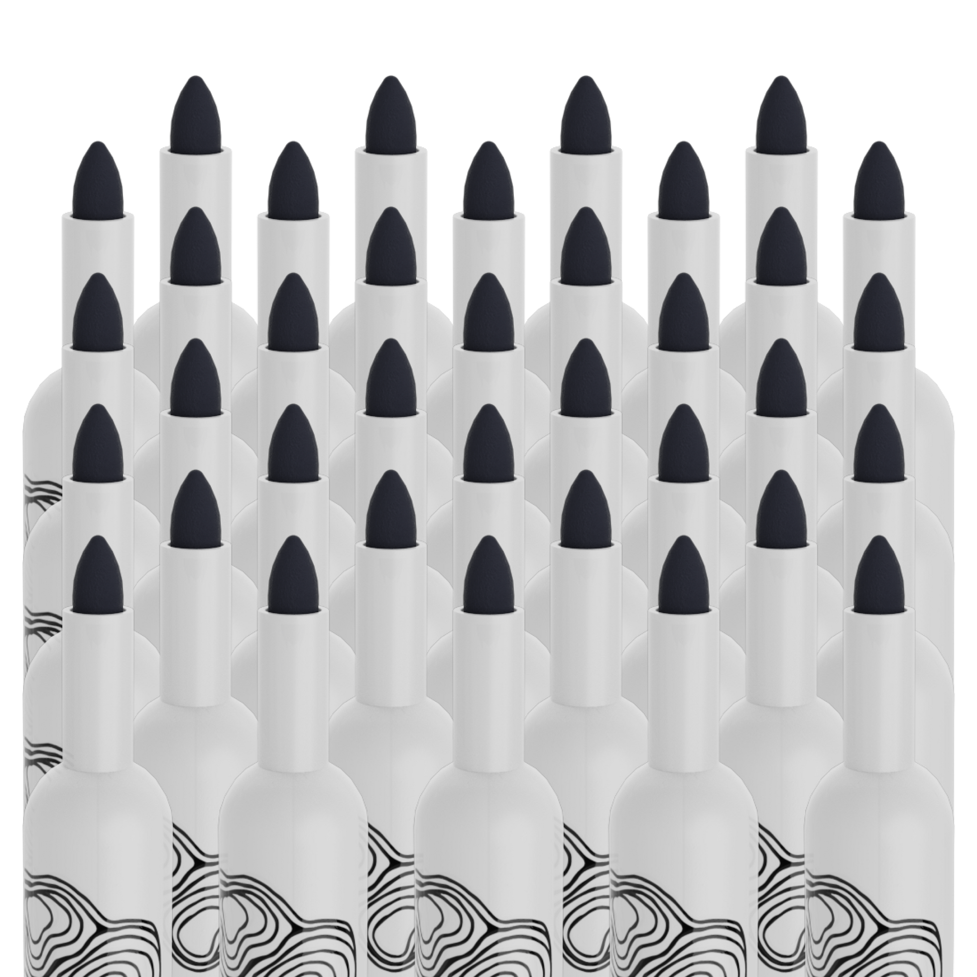 Marker bodies are made with 100% reclaimed plastic and include a bio-recyclable additive that accelerates biodegradation. Packaging is 100% plastic free.